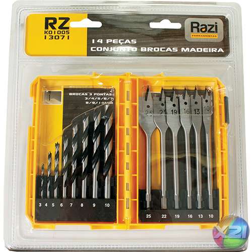 | Conjunto de Brocas para Madeira com 14 Peças RAZI |